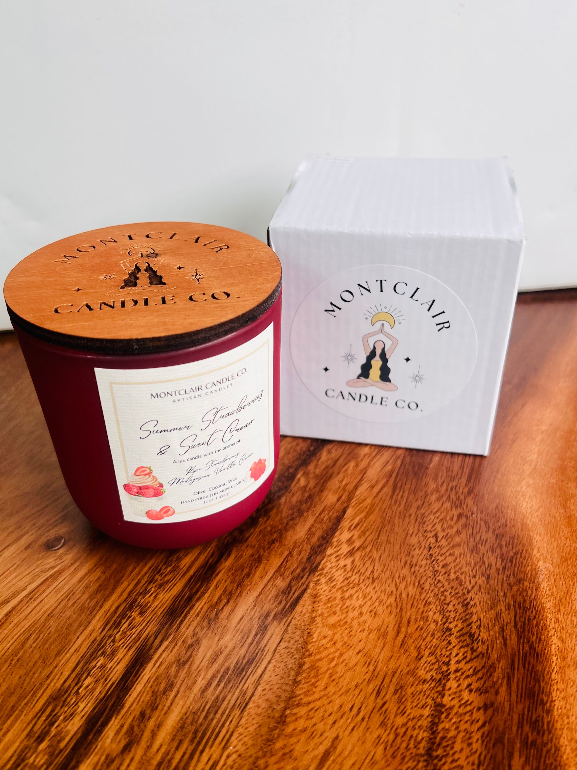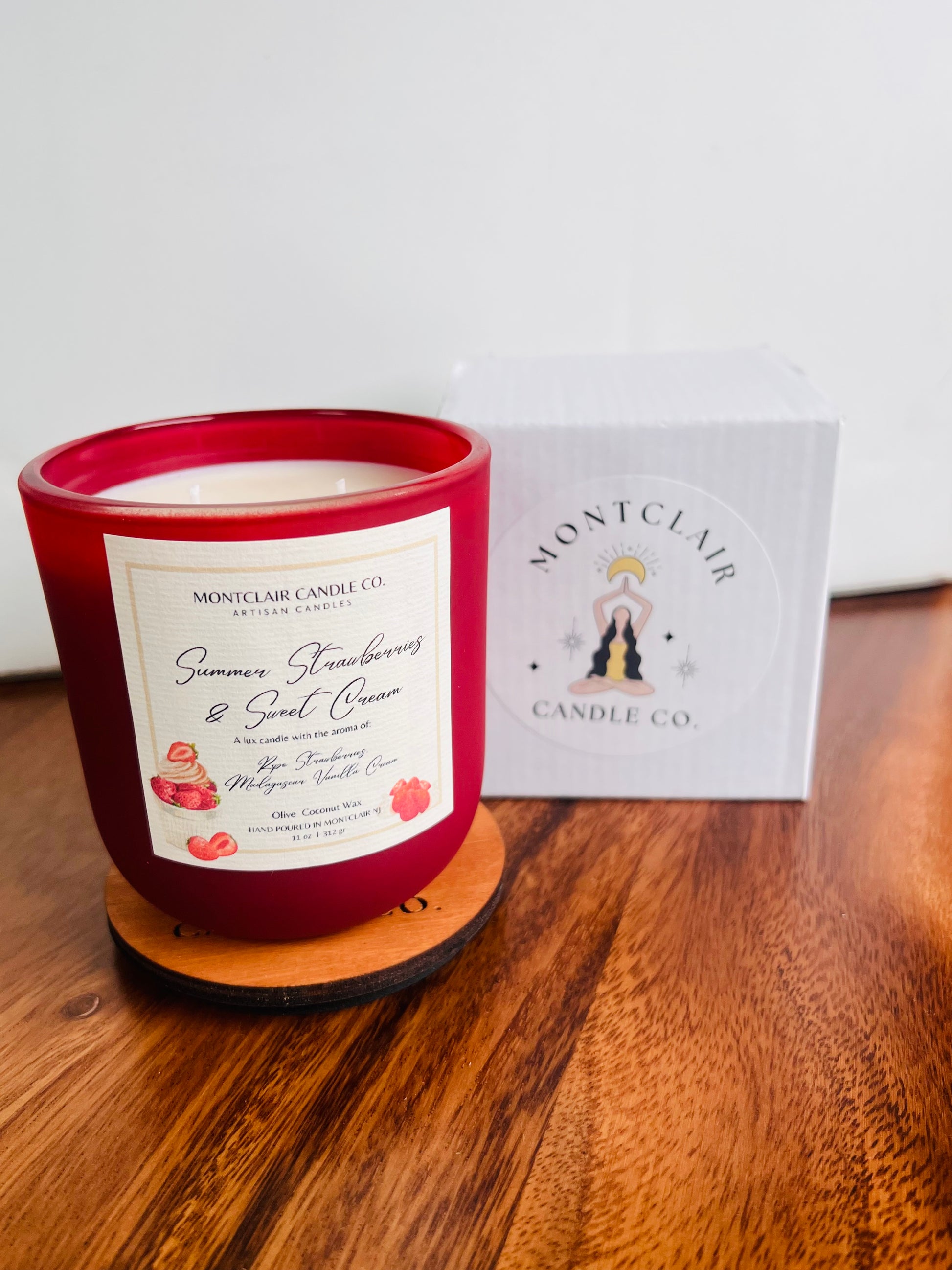 "Strawberries Whipped Cream" Scented Luxe Aromatherapy Candle | Olive Wax Blend | Summer Limited Edition Candle | 11 oz